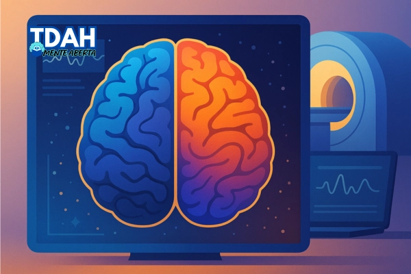 Ressonâncias magnéticas mostram padrões médios no TDAH: hipoativação frontoestriatal, alterações no cerebelo, DMN mais intrusiva e diferenças em substância branca. fMRI e DTI explicam distração, preferência por recompensas imediatas e dificuldade de inibir respostas. Não é exame diagnóstico, mas um mapa neurobiológico que orienta manejo.